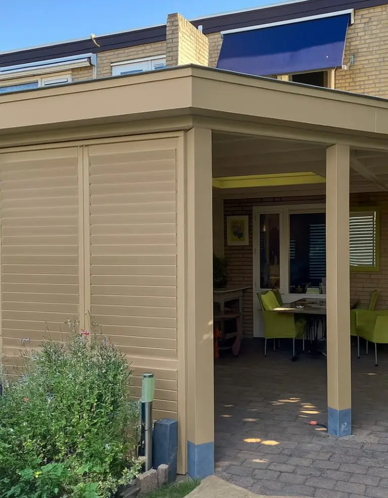 Taupe shutters vormen een warme keuze die perfect past bij: